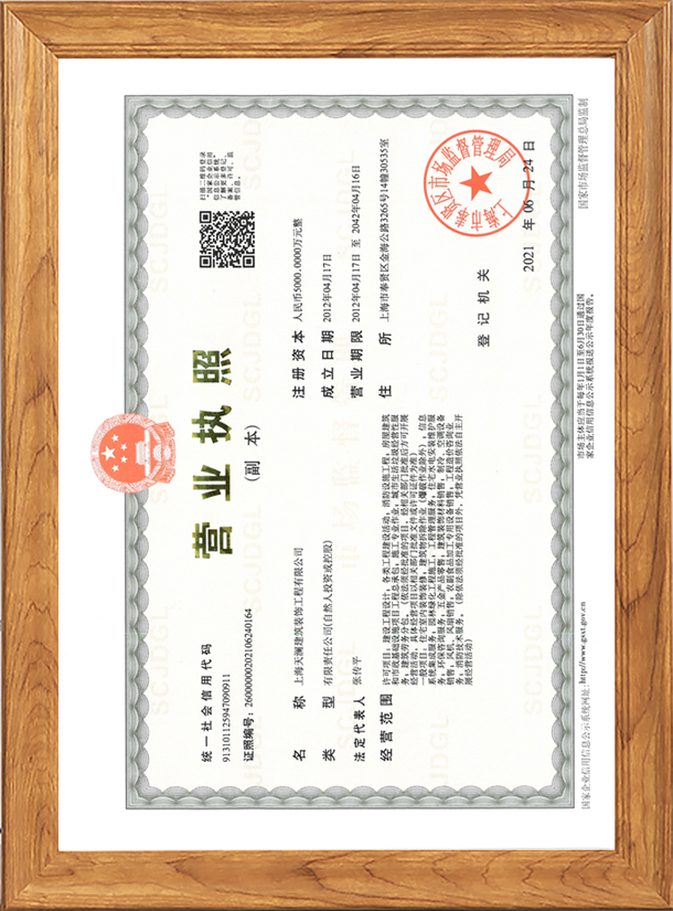 上海天瀾建筑裝飾工程有限公司由熱愛(ài)裝修事業(yè)的專(zhuān)業(yè)人士創(chuàng)辦,經(jīng)上海工商行政管理局注冊(cè)登記的專(zhuān)業(yè)上海工裝公司。天瀾建筑裝飾注冊(cè)資本5000萬(wàn),擁有建筑施工總承包三級(jí),鋼結(jié)構(gòu)工程專(zhuān)業(yè)承包三級(jí)建筑裝飾工程專(zhuān)業(yè)承包二級(jí),建筑機(jī)電設(shè)備安裝專(zhuān)業(yè)承包三級(jí),消防設(shè)施工程專(zhuān)業(yè)承包二級(jí)等資質(zhì)。國(guó)家建筑裝飾裝修工程設(shè)計(jì)與施工二級(jí)資質(zhì)單位、上海市建筑裝飾裝修行業(yè)協(xié)會(huì)會(huì)員單位、有上海市建設(shè)和交通委員會(huì)頒發(fā)的“安全生產(chǎn)許可證”。