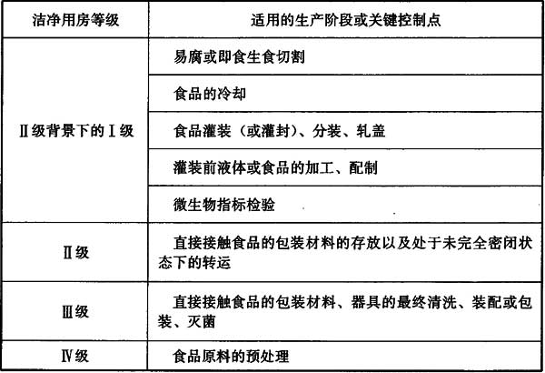 注:表中生產(chǎn)階段或關鍵控制點應符合本規(guī)范表4.2.1的說明,具有高污染風險,才適用Ⅱ級背景下的Ⅰ級(含設備自身具備的)的條件,如冷卻階段中的月餅、酸奶的冷卻,檢驗階段中的一般理化檢測則不適用此種條件。